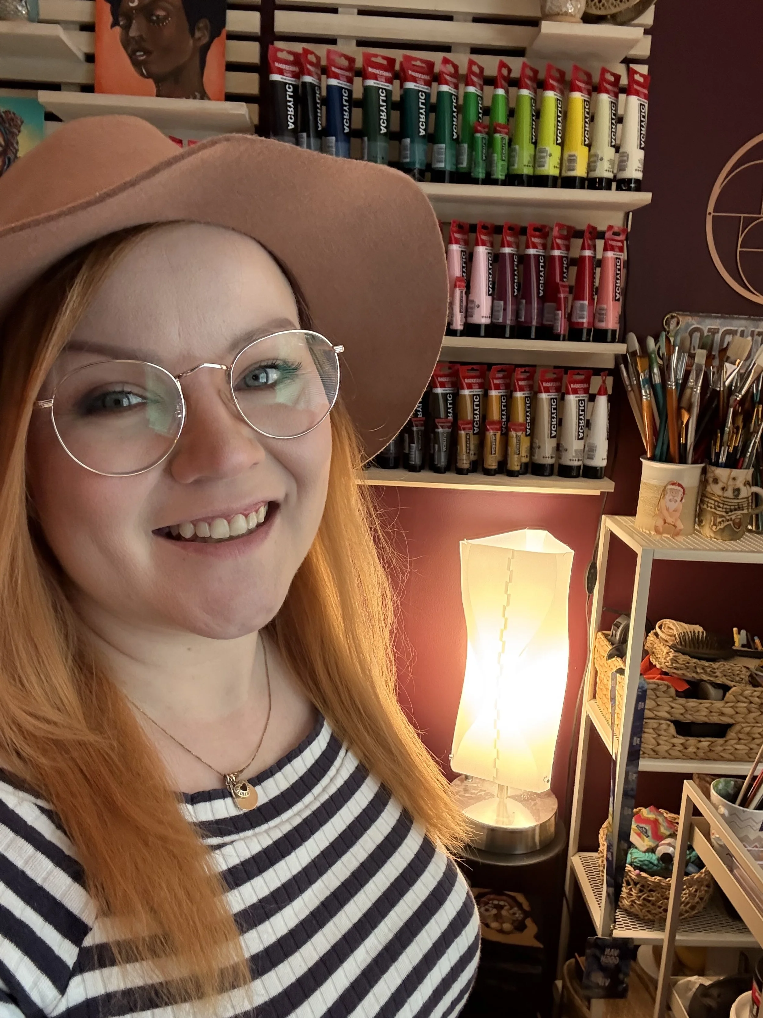 I am a 3rd generation surrealist. All through my childhood until my mid-twenties, you could have found me with a pen in my hand sketching on a small notepad. Only in recent years, after moving to Spain with only watercolors as artists’ supply, I’ve truly found my medium from paintings. Watercolors have since changed to acrylics as I’ve always been torn towards more flat surfaces. I still love sketching quick funny things that I then later turn into bigger paintings.